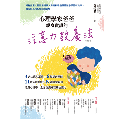 家有大小二寶,將心理學實際應用於教養,採用科學方法育兒的黃教授,在這本書中,不僅幫助我們認識注意力是什麼,更重要是告訴大家可以用哪些方式來提升注意力的運作,分享科學奶爸與孩子互動過程的點點滴滴,從怎麼分析孩子的問題在哪,到要怎麼對症下藥。