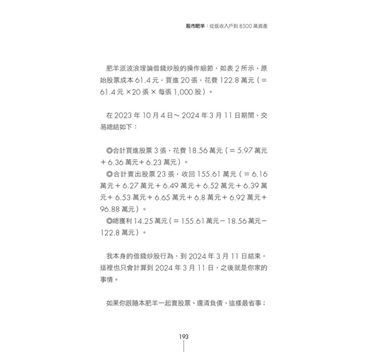 肥羊認為,只有隨著股市漲跌變化混合使用四季戰術的人,才能真正掌握肥羊兵法的精髓。之後只要嚴守紀律、適時操作,就有機會和他一樣,及早賺到足以退休的財富
