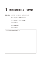 本書由臺灣大學國際華語研習所資深教師群選註,針對已經學過古代漢語一年以上,且現代漢語已達中上程度的外國學生編寫,目的是在附帶英文說明的入門文言教材與本國人所使用的文言讀本之間建立一道過渡橋梁。課文選自《史記》名篇,藉由傳記故事的引導,讓學生在學習詞彙、文法的過程中也能享受太史公文筆之生動。同時透過課前暖身、課後補充、延伸閱讀等不同單元的設計,讓學生了解《史記》不同體例,以鞏固所學,進一步提升古代漢語閱讀能力。