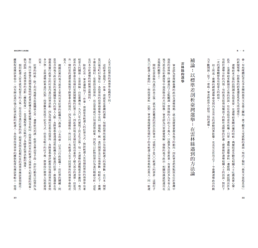但筆者身為一介外國人,就算使用了臺灣學者最精擅的研究方法,也難以在研究成果上做出自己的特色。因此本書採用的方法,是精讀中央選舉委員會所公布的選舉數據,利用標準差(standard deviation)、直方圖(histogram)、相關係數(correlation coefficient)等分析方式,從獨到的觀點對臺灣選民的投票行為進行解讀。