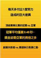 頂級賽車比賽的冠軍vs.亞軍(冠軍平均僅贏0.48秒,獎金卻是亞軍的兩倍之多)