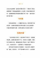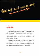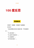 這是一本具有啟發性的書,可以應用於個人和職場生活。100度原則非常簡單,每天都可以應用,我在1小時內就讀完並吸收了這本書的內容。