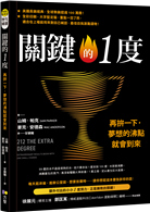 微小的進步幾乎看不出任何差異,但只要時間累進就能成就宏觀的成就。無論東方、西方文化都有始於足下、聚沙成塔,把目標拋向遠端地平線的想像。多努力一點,多留心一些,99%是完成,100%則是完美。偉大與平庸就介於此間的差異。把《關鍵的1度:再拚一下,夢想的沸點就會到來》放進背包裡,或是伸手可及之處,在心力消逝、疲勞侵襲你的時候拿出來翻閱,你絕對能獲得重新復甦的力量。你值得,也應該擁有這本書。