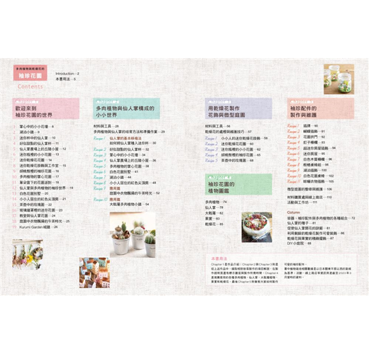 並完整收錄了122種「多肉植物」與「乾燥花」圖鑑;