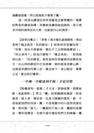 @特色3:運用現今社會情況帶入經義:以其慣有的現代筆法來執寫此部經典,教導眾生如何在入世的生活中,以出世心來應變各種生活中的困頓與難題、苦難、病苦。