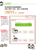 全書作者規劃了21個日常生活中最常用的主題!前16個單元著重口說句型,後5個單元帶你掌握寫作會用到的句型!不管是生活上還是職場上,都能如魚得水,應用英文不再是難題!