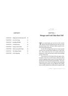 酋長很清楚為什麼部落裡關心她們的人沒有反對這件事。在這艱困的時候,許多男人都變得煩躁易怒,只要說錯或做錯一件事,就可能引起一陣騷動,讓事情變得更糟糕。所以,部落裡的老弱婦孺只能將自己心中的不愉快隱藏起來,因為他們知道,寒冷會為這群掙扎求生的人帶來恐慌,進而引發殘忍野蠻的行為。