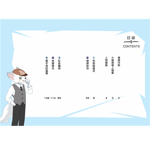 ✦看不見的毒藥─邁克狐被超越了!啾颯心焦情急的尋找案件時,一向不參加晚宴的邁克狐,竟拉著他參加伯爵夫人的宴會。宴會上,不只遇到對手黑狐狸莫利,還碰上突如其來的事件!