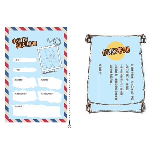 ✦啾颯偵探筆記:幫助小讀者整理線索,推理思考,提升觀察力和分析力。