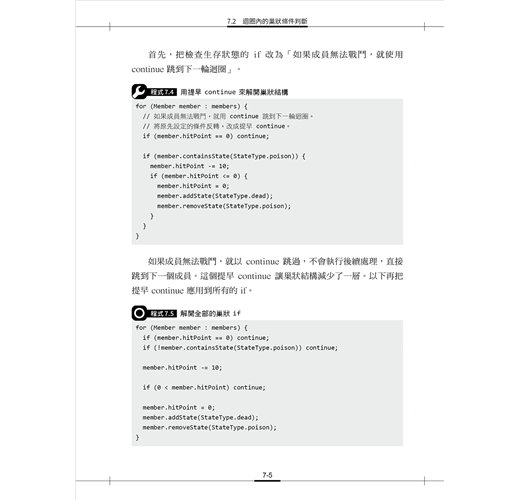 以電商系統與電玩遊戲為例,挑選主流語言共通語法,逐步示範將粗劣程式碼縫補、修整的過程。