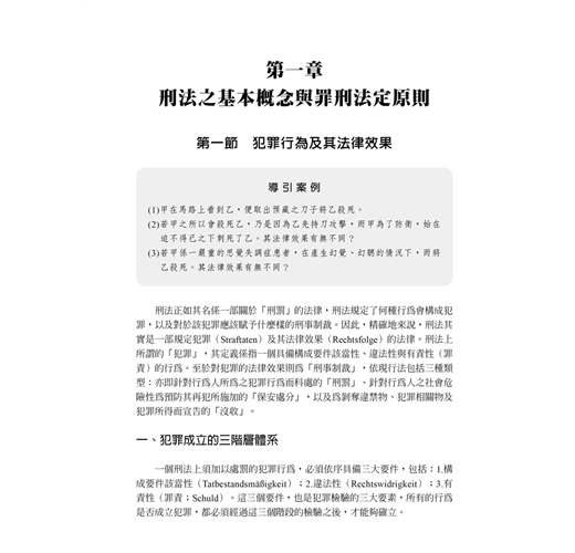 個人僅係刑法後學,欲出版教科書其實頗多掙扎,本想再經歷多幾年的刑法教學經驗讓自己的見解更趨於成熟後再行出版,但由於相關中外刑法教科書改版與文獻累積迅速,使我必須頻頻回去修改原來引用之教科書版次並增補文獻,再加上法律的修正需重新修改內容,以致於書寫的進展異常緩慢,讓我意識到如果再拖延下去則出版日將遙遙無期,因此方下定決心讓此書問世。惟也正由於此項因素,筆者一些不盡成熟的見解不免有野人獻曝之嫌,尚祈刑法學界的老師與諸位先進不吝指正,若有應修正之處也請讀者海涵。