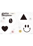 運用模板法,可以設計出更複雜、規模更大的場景,將設計好的圖案畫在紙板上剪下,將模板放在咖啡杯上,撒上巧克力粉即可輕鬆完成,推薦給對注入法沒有信心的朋友,根據模板法,不僅可以在短時間內完成漂亮的圖案,更能建立你對咖啡拉花藝術的自信。