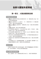 書中將各單元的重要觀念,依教材之邏輯架構整理彙編,簡潔而扼要,可說字字重點。「老師解說」可延伸教材視窗,以求更上一層樓。書中單元系統架構完整,讓你掌握警報與避難設備精髓所在。架構及特色如下: