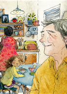 ★冷沁插畫的畫風令我想起《小淘氣尼古拉》的桑貝。手繪觸感適宜勾勒溫馨的童年,每個人物表情生動,神態栩栩如生。