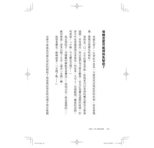 ✽「從腦科學家的立場來看失智症者的問題行動,並從女兒的身分來觀看母親的改變,裡面翻轉了很多我們對失智者的理解……這正是本書價值的真正所在。」