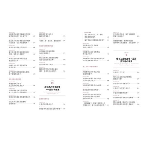 《勞基法》中資遣、加班費、退休金如何計算;《勞動事件法》下發生勞資糾紛如何合法處理,以及《性平法》中的性騷擾防治、性別平等工作法、性別平等教育法三大法規,打好法規基礎,讓你在面對各式勞資問題,都能輕鬆找到最佳解決方案!