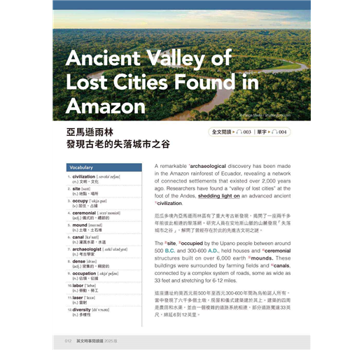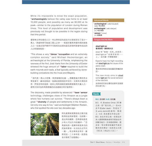 除了平日不常見的專有名詞之外,有時會出現隨潮流演變,與表面字意不同的詞彙。本書各篇文章皆附有解說專有名詞的「EZpedia」,補充12大主題領域的相關用語、背景講述及知識意涵。不僅是學習英文,透過廣泛認識各領域新知,有效提升系統化閱讀 !