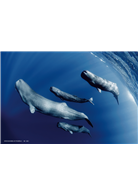 本書第一章提及,當要人們拿一張紙畫出心目中的「鯨魚」,大概過半數的人畫的都是頭與身體不成比例的簡單曲線:方又圓的大頭⋯⋯加上流線延伸至尾部俏皮勾起的型尾鰭,還不忘在頭頂上畫個洞,附帶噴泉一般的水柱。牠,就是抹香鯨。大眾想像中的鯨魚圖像,總是有抹香鯨的影子。