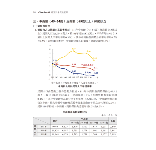 三、中高齡(45~64歲)及高齡(65歲以上)勞動狀況