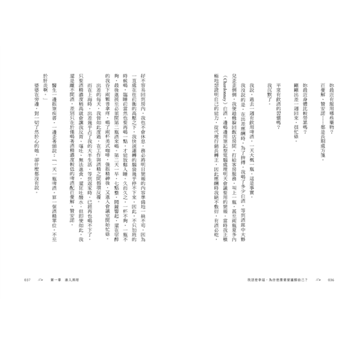 ★你以為酒癮不過是短暫意志力的問題,但其實它和憂鬱症、躁鬱症等精神疾病相同,是一輩子的課題。