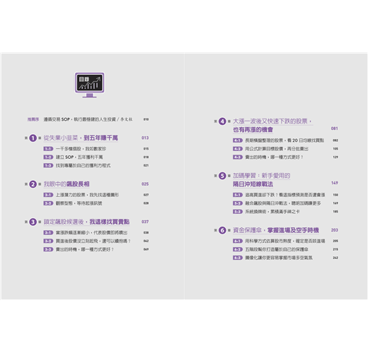 等新手熟練到一定程度、慢慢邁入老手階段,往往會對操作產生一些個人想法,此時就可以在原始SOP 的架構上進行調整,這就是所謂的創新,莊爸亦在書中不斷強調,投資人應該找到自己專屬的一套方法,才能避免被主力坑殺。