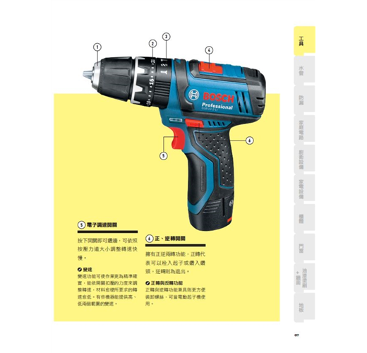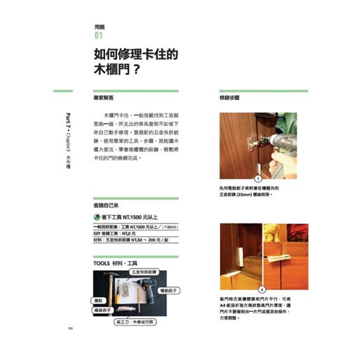 詳述工作的分解步驟和完工成果,讓完全沒有宅修經驗的新手也能輕鬆應付,成為家居必備的工具典藏書。