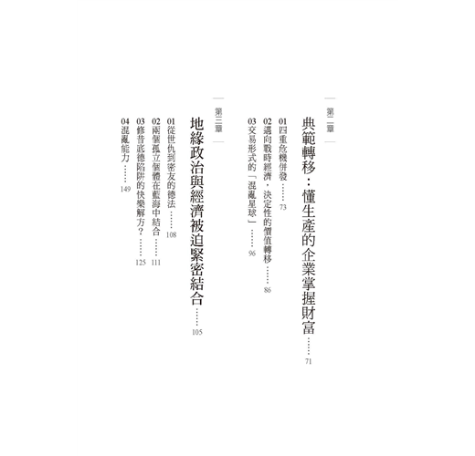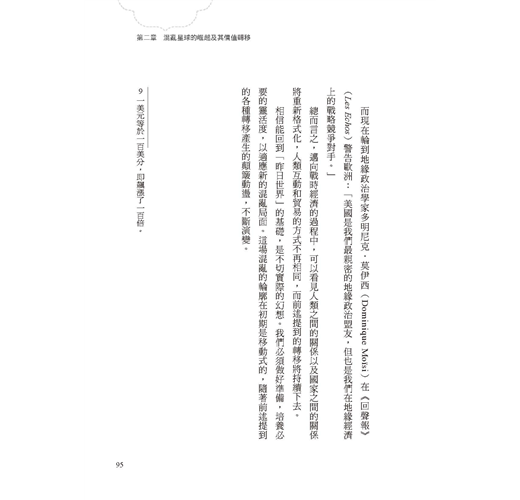 儘管本書是以歐洲觀點出發,仍能刺激身為亞洲人的我們思考,重新審視全球化帶來的地緣政治與總體經濟效益,為自己找到最有利的位置。