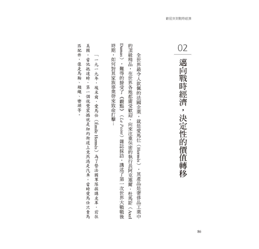 全世界最令人欽佩的法國企業,就是愛馬仕(Hermès),其產品是奢侈品工業中的頂級精品,在世界各地都廣受歡迎。向來注重保密的執行長阿克塞爾.杜馬斯(Axel Dumas),難得的接受了《觀點》(Le Point)雜誌採訪,講述了第一次世界大戰戰後時期,如何對其家族事業帶來致命打擊: