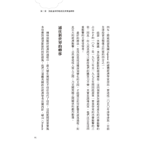 在傑出經濟學家吉恩.皮薩尼-費里(Jean Pisani-Ferry)的領導下,法國戰略署(France Stratégie)的專家們估計,未來40年環境轉型成本將占GDP的3%到4%;挪威能源集團 Equinor 的總體經濟學家指出,要達成2025年淨零排放,目前全球投資金額僅占所需的1/4。