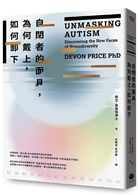 本書作者戴文‧普萊斯是社會心理學家、成人自閉症者,也是跨性別者。在本書中,他分享了自己及許多自閉症者的心路歷程、從小到大的蒙面經歷,以及自閉光譜與性別、種族、文化等因素的交織下,身處不同階級位置的個體在尋找認同之路時發展出哪些特殊的應對策略。這些經歷有些高度重疊,有些又截然不同。本書不僅是為了自閉光譜內的每個人所寫,也是為了渴望理解神經多樣性的美好與複雜的每一個人所寫。當我們站在全然不同的立足點去感知世界,無論是身在自閉光譜上的人,還是非自閉症者,都能從這本書獲得不同於過往的嶄新視角,與周圍的人建立更深的連結。