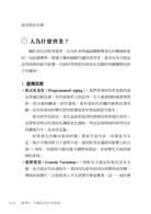 我們每個人都在追求更長久的青春,然而在這個過程中,真正值得我們追尋的不僅僅是壽命年限的延長,而是延續生命的優良品質。正因如此,我將基因、發炎、自由基、粒線體、生活型態、飲食、營養、睡眠、紓壓、精準檢測等這些抗老研究,融入這本書中,希望藉由這些探討,為讀者提供一個系統性的抗老指南,並有所依循。