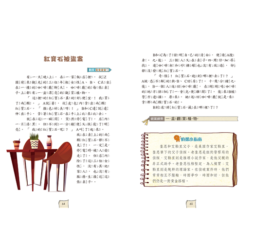 ◎偵探遊戲:從故事中找出破案的關鍵,培養想像力與邏輯思考。