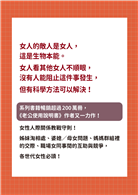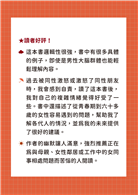 本書作者以擅長的腦科學讓你知道,女性相處中的嫉妒、攀比、耍心機、講閒話,其實是大腦正常運作的證明。大多數女人的友情,都伴隨著一點痛,而本書會告訴你女人為何容易對女人不爽(或是你為何會讓其他女人看不順眼),並提供解決對策。