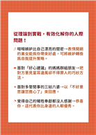 只要理解自己為何不爽,就會發現自己的不爽其實很可笑;了解對方不爽的理由,則可以避開對方的地雷。在對應的過程中,你的自我肯定感會自然而然提升!