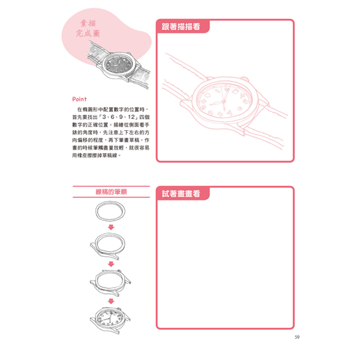 ◎不用另外準備素描本,直接就能在書上跟著描、照著畫,還能下載「描圖練習簿」隨時練習