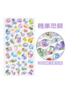 《3D立體浮雕貼紙──糖果恐龍》裡面有可愛的又夢幻的恐龍,還有糖果、冰淇淋、棒棒糖、果凍等多種造型。3D立體造型+水晶透明感的貼紙讓大朋友、小朋友都愛不釋手!