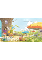 托馬和艾瑪小兄妹開心地走出樹屋,沿著一條生氣盎然的小路走去,路旁長滿比他們還高的蕈菇房子,地上橡實大如石塊,藍衣小郵差先生身形超級迷你可愛,正忙著送信給其他小生物,一個還比一個小,兩人與昆蟲同行,跟青蛙阿姨寒暄,有時抓著蒲公英的絨毛在空中飛翔。