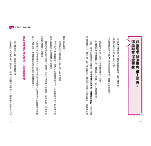 包括檢視與父母的關係、改變思維的技巧,以及實現夢想的三步驟,