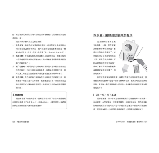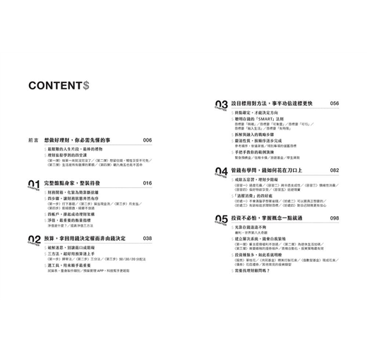 作者會透過「SMART」法則,進化你的理財腦,同時幫助你建立「清醒消費」思維,花錢更輕鬆自在,不被惡習困住。此外「擺脫帳務」和「輕鬆存錢」的絕妙祕訣也會手把手的一一傳授給你。