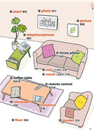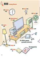 本書共分為12個主題、67個單元,整本書的圖像都是由同一位畫家繪製,保持整本書的一貫性與舒適感,有些單元以大場景圖教單字,讓孩子沉浸在一個氛圍當中;有些單元以趣味小圖教單字,讓孩子欣賞一個個的物件細節;有些單元則是以例句的方式呈現,這些例句都貼近孩子的生活日常,讓孩子們讀了能有同感。另外,某些單元聚集了特殊功能的文法字,這些單元會以「小課堂」的標題開頭,讓孩子知道這篇裡的內容會跟語言的使用和規則有關。