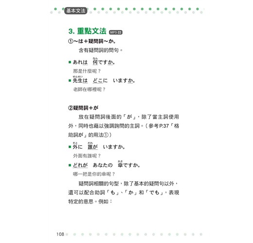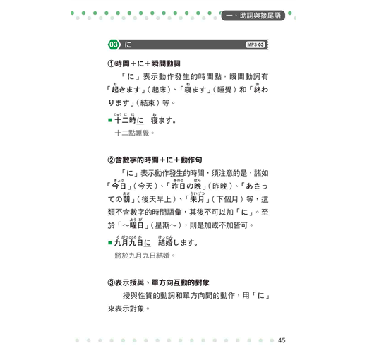 標準東京腔音檔,收錄全書所有例句,讓學習更加分。