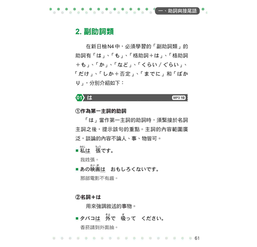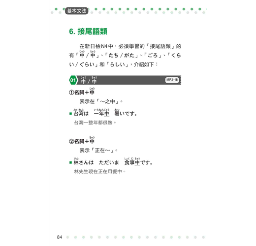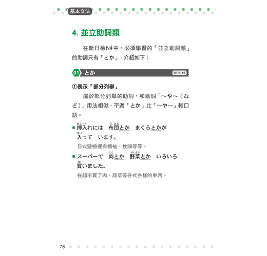 (全書內容節錄自《新日檢N4言語知識(文字‧語彙‧文法)全攻略》)