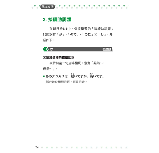 完全收錄新日檢N4程度文法規則,歸納深入淺出,迅速建立基礎日語概念。