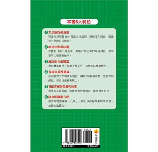 ★只要隨身攜帶《新日檢N4文法帶著背!》,便能迅速搞定所有必考文法!