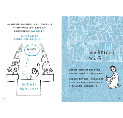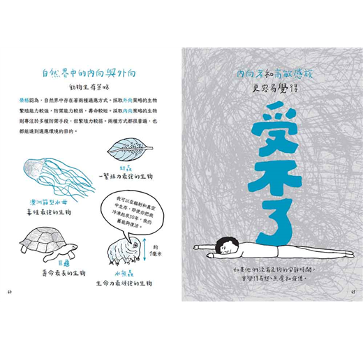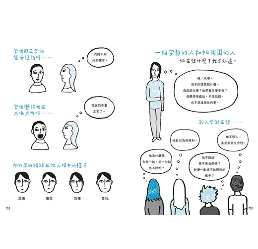 「鮮明的線條與寫實的插圖,讓我們更容易靠近內向者的內心世界。與此同時,作者在書中展現的詼諧與幽默,也替內向者提供另一種在這個世上安身立命的新視角。」──蘇益賢|臨床心理師