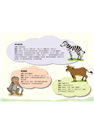 2.透過故事中動物的喬裝打扮,讓小孩了解如何分辨各類動物的不同形態特徵。