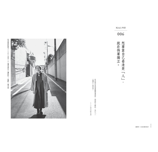 「不需要太努力,但也別太消極」,這本書既是記錄樹木希林一生言語的精湛之作,更能在每一個人的生命轉角,或是跨越高牆之際,帶來啟發,或是輕盈的陪伴。