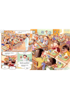 本書涵蓋了餐前檢查工作人員的健康狀況、更換工作服、處理不同的食材和餐點,以及餐後清理等細節,並強調安全和衛生措施的重要性。插圖生動描繪了配餐室裡各種情景及同心協力製作的工作過程,凸顯了校園廚房工作人員為學生提供營養美味飯菜的奉獻精神和心意。