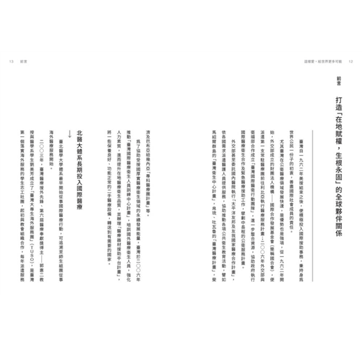 而本書所探討的主題,則是彙整北醫大體系近二十年來,協助政府執行國際醫療服務計畫所累積的經驗與學習。