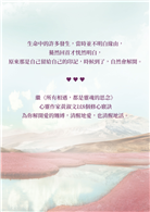 感動感佩淑文用心描述生命成長歷程、家人互動、環境社會影響,修心、道愛。有懷疑、有執著,最終撥雲見日,對生命禮讚。非常符合我們在積極倡議的心理健康促進,能從前端了解自我,找出方向與資源,展現韌性和希望。